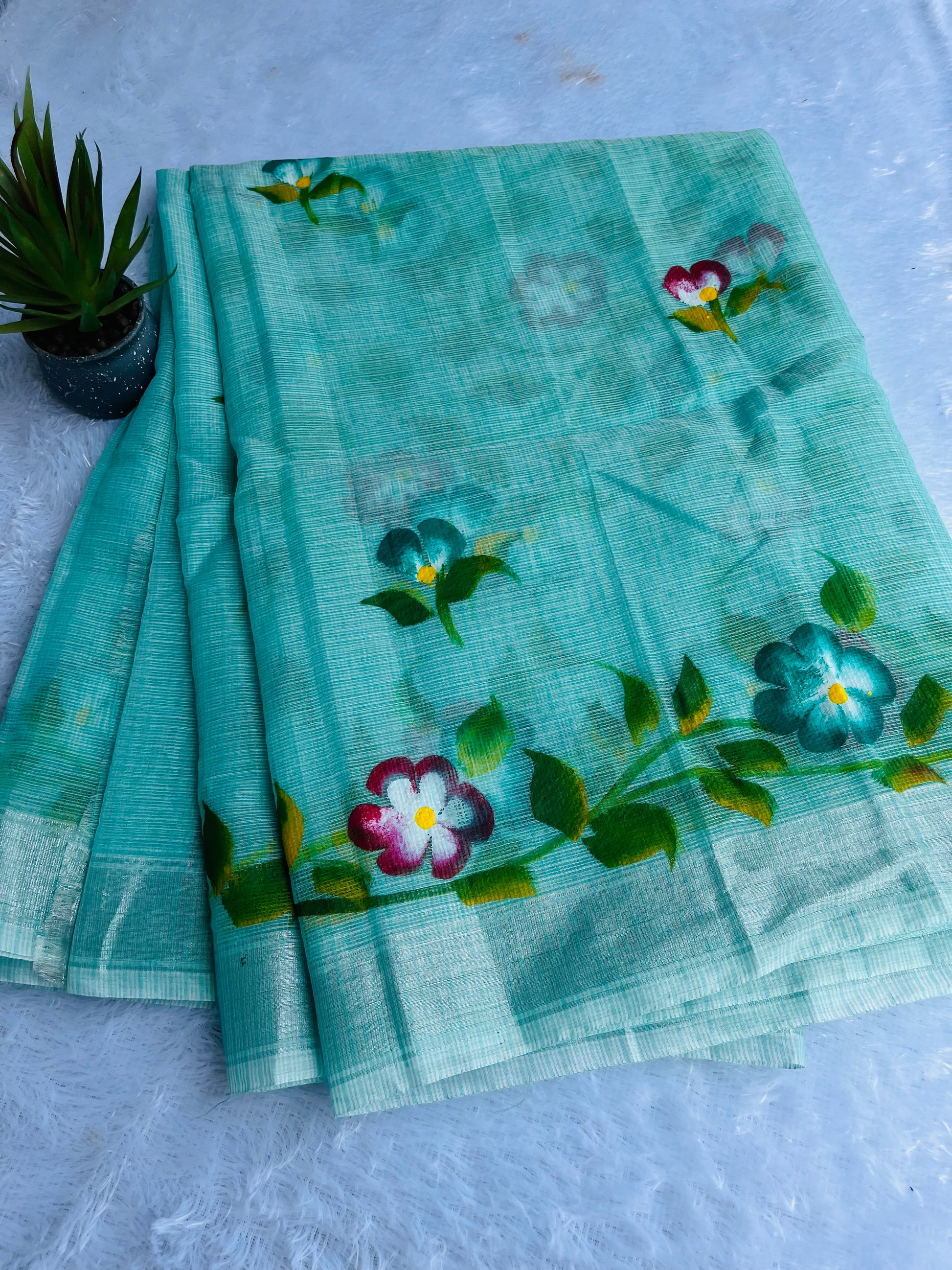 Kota Doria saree with painted flower saree